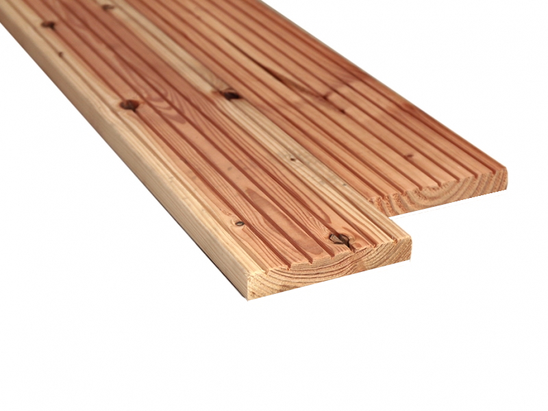 Douglas vlonder/terrasplanken. 1-zijdig geprofileerd.