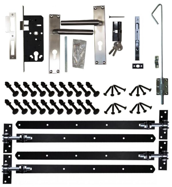 Deze set bevat alles om je opgeklampte deur netjes in het kozijn te hangen.