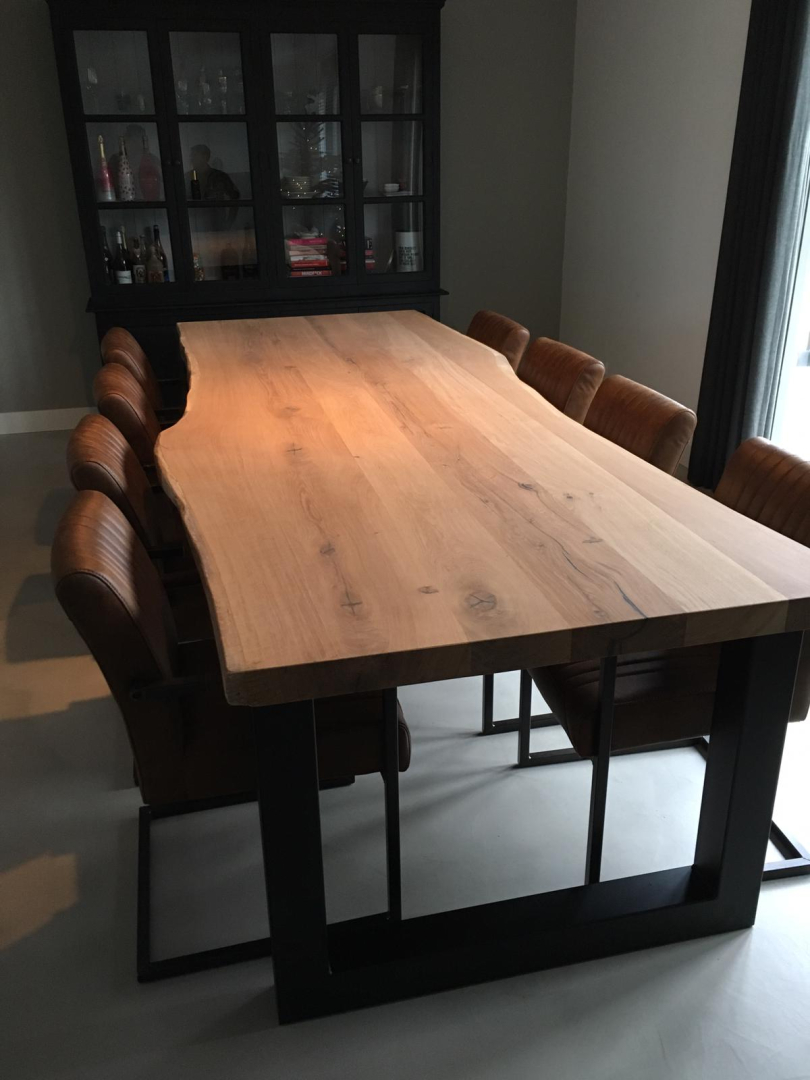 We maken ze in diverse houtsoorten die wij in het assortiment hebben en zelfs lengtes tot 5m is geen probleem. Wil je een ronde tafel ov toch liever een (Deens) ovaal ook die kunnen wij op maat voor je maken. We kunnen de randen voorzien van een verjonging of een strakke facet kant. Kom langs en ontdek wat de mogelijkheden zijn.